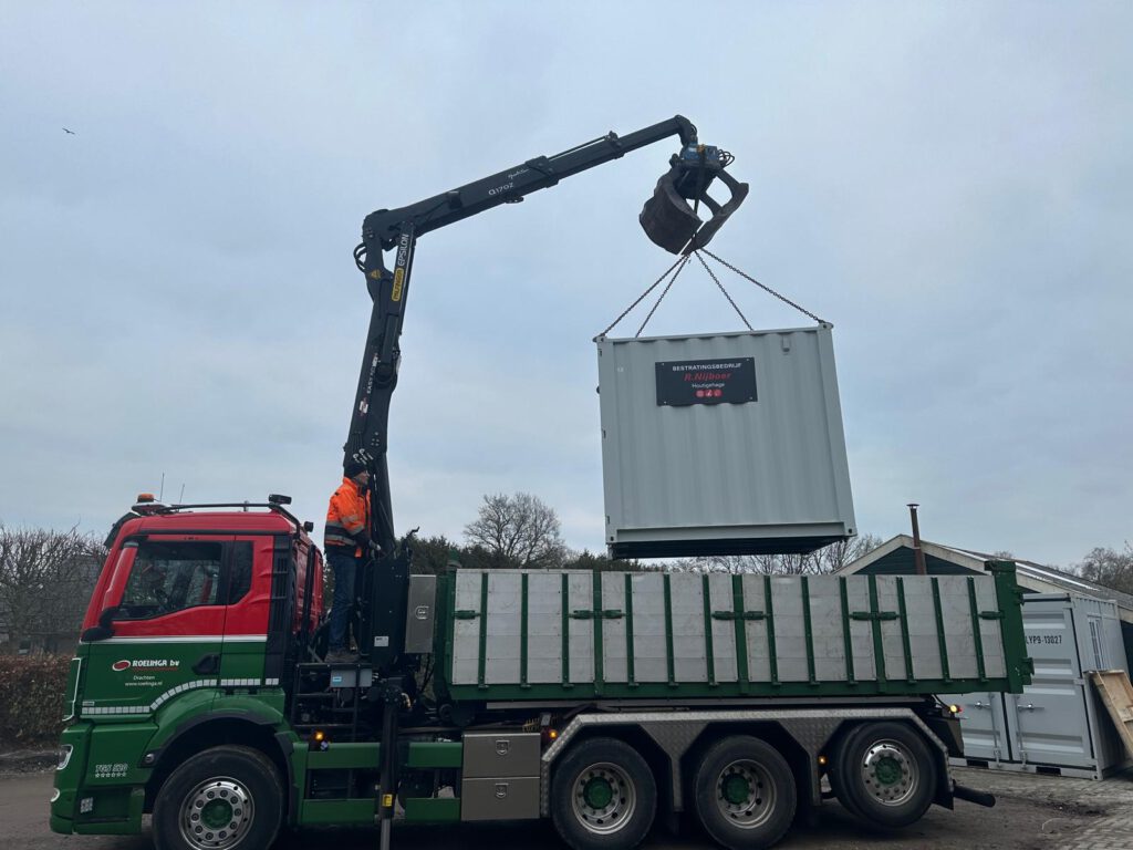 Firma R. Nijboer levering 8 ‘ft materiaal container Firma R. Nijboer bestrating BV. Neem contact op Benieuwd naar wat we