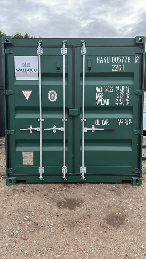 €2.250,00 20 ft container groen RAL 6005 Nieuw Nieuwe 20 ft containers groen.One door handel.Lockbox (veilig afsluiten met containerslot)Luchtroosters in […]
